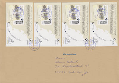 Inlandsbrief mit Einwurf-Einschreiben (501-1 000 g) vom 03.07.2024 (11. Periode) frankiert mit 6 Blocks a 0,85 € (=5,10 €, 2,75 Brief 2,35 Einwurf-Einschreiben) |