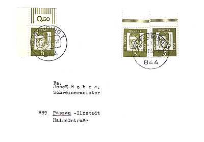 Inlandsbrief (1-20 g) vom 25.04.1969 (4. Periode) frankiert mit 6 Marken a 5 Pfennig (=30 Pfennig); fehlgetrennten Rollenmarken |