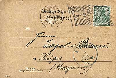 Inlandspostkarte vom 01.07.1903 frankiert mit einer Marke a 5 Pfennig (=5 Pfennig)