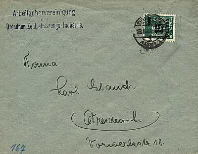 Inland printed matter (1-25 g) from 13.09.1923 (17. Period) franked with one stamp a 15 000 Mark on 40 Mark (=15 000 Mark) |
