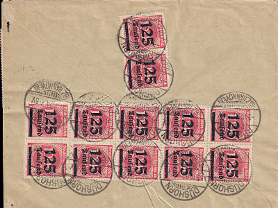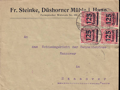 Inland cover (1-20 g) from 24.09.1923 (18. Period) franked with 2 stamps a 125 000 Mark on 1 000 Mark (=250 000 Mark) |