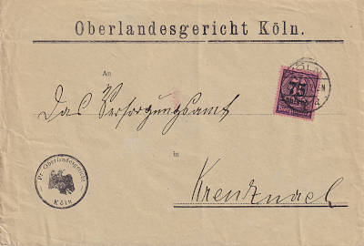 Inlandsbrief (1-20 g) vom 12.09.1923 (17. Periode) frankiert mit einer Marke a 75 000 Mark auf 50 Mark (=75 000 Mark) |