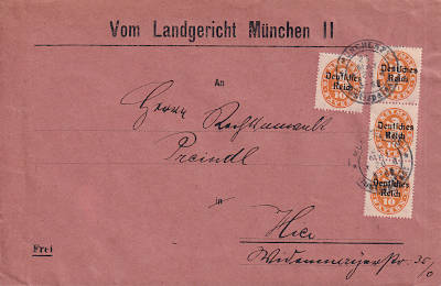 Ortsbrief (1-20 g) vom 25.05.1920 (5. Periode) frankiert mit 4 Marken a 10 Pfennig(=40 Pfennig)