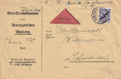 Inland cover with cash on delivery (1-20 g) from 09.12.1925 (27. Period) franked with one stamp a 20 Pfennig (=20 Pfennig, 10 cover 10 cash on delivery) |