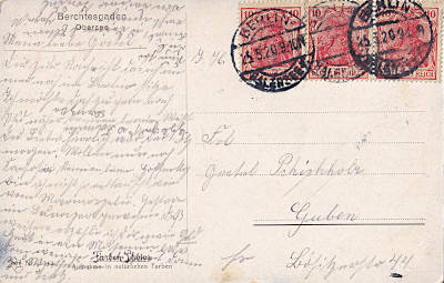 Inlandsbrief (1-20 g) vom 03.10.1909 (1. Periode) frankiert mit einer Marke a 10 Pfennig (=10 Pfennig) |