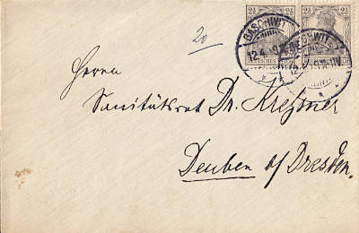 Inland printed matter (1-50 g) from 12.04.1919 (3. Period) franked with 2 stamps a 2½ Pfennig (=5 Pfennig) |