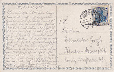 Inland postcard from 28.11.1920 (5. Period) franked with one stamp a 30 Pfennig (=30 Pfennig) |