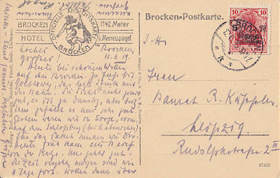Foreign postcard from 14.09.1919 (3. Period) franked with one stamp a 10 Pfennig(=10 Pfennig)