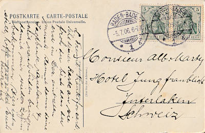 Foreign postcard from 05.07.1906 franked with 2 stamps a 5 Pfennig (=10 Pfennig)
