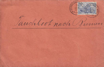 Umschlag für einen Tauchbootbrief vom 13.01.1917 frankiert mit einer Marke a 2 Mark (=2 Mark)