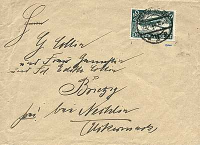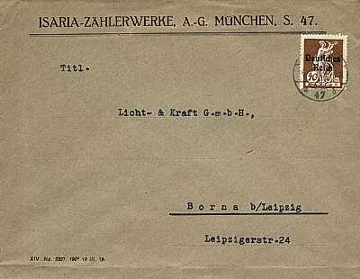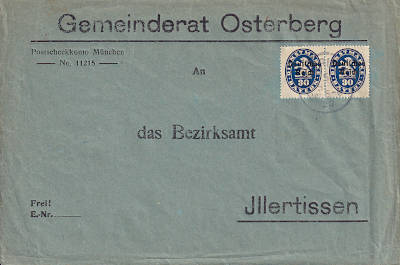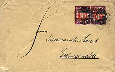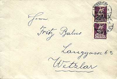 Inland cover (1-20 g) from 17.07.1920 franked with 2 stamps a 20 Pfennig (=40 Pfennig) |