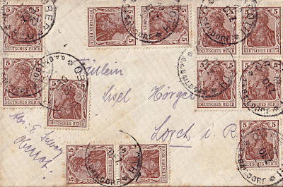Inland cover (21-250 g) from 12.12.1920 franked with 12 stamps a 5 Pfennig (=60 Pfennig) |