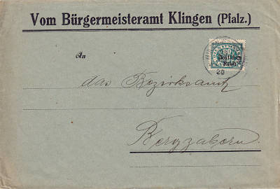 Inland cover (1-20 g) from 30.06.1920 franked with 2 stamps a 20 Pfennig (=40 Pfennig) |