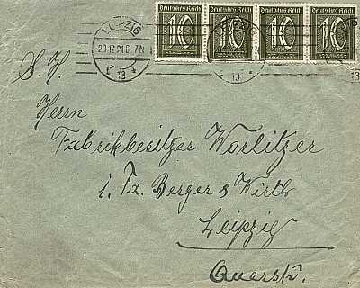 Ortsbrief (1-20 g) vom 04.08.1921 frankiert mit 2 Marken a 20 Pfennig (=40 Pfennig) |