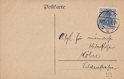 Ortspostkarte vom 10.10.1921 frankiert mit einer Marke a 30 Pfennig (=30 Pfennig)