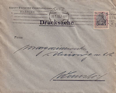 Inland printed matter (1-50 g) from 29.01.1922 franked with one stamp a 50 Pfennig (=50 Pfennig) |