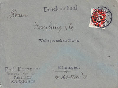 Inland printed matter (1-50 g) from 22.02.1922 franked with one stamp a 50 Pfennig (=50 Pfennig) |