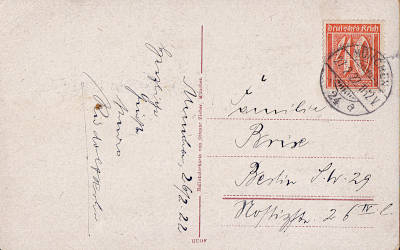 Inland postcard up to 5 words from 27.02.1922 franked with one stamp a 40 Pfennig (=40 Pfennig)