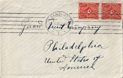 Auslandsbrief (1-20 g) vom 13.08.1922 frankiert mit 2 Marken a 3 Mark (=6 Mark)