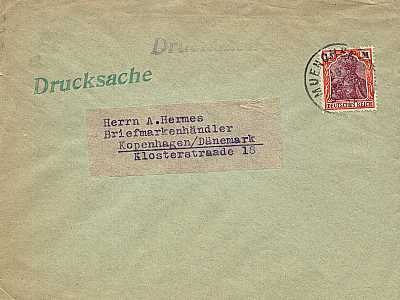 Auslandsdrucksache (1-50 g) vom 28.08.1922 frankiert mit einer Marke a 1¼ Mark(=1,25 Mark)