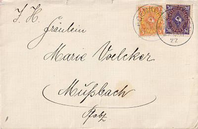 Inlandsbrief (1-20 g) vom 23.12.1922 frankiert mit 2 Marken (=25 Mark)