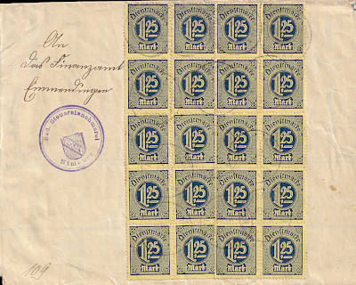 Inlandsbrief (1-20 g) vom 18.12.1922 frankiert mit 20 Marken a 1,25 Mark (=25 Mark)