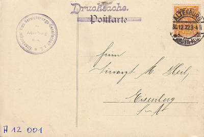Inlandsdrucksache (1-25 g) vom 30.12.1922 frankiert mit einer Marke a 5 Mark (=5 Mark)