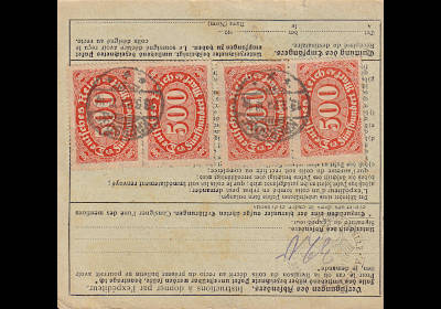 Auslandspaketkarte (10 000 g, > 75 km) vom 13.03.1923 frankiert mit 4 Marken a 500 Mark (=2 000 Mark) |