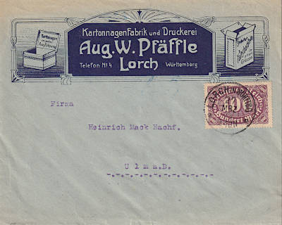 Inlandsbrief (1-20 g) vom 02.03.1923 frankiert mit 10 Marken a 10 Mark (=100 Mark) |