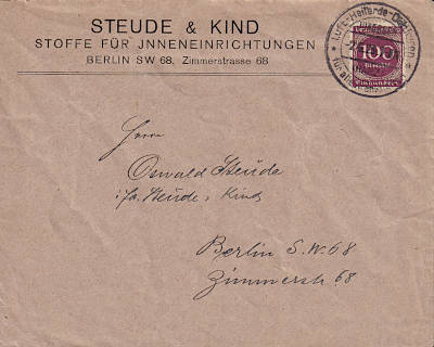 Inlandsbrief (1-20 g) vom 02.06.1923 frankiert mit einer Marke a 100 Mark (=100 Mark) |