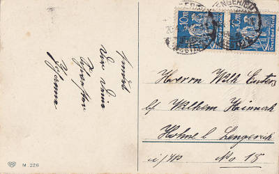 Inlandspostkarte bis 5 Worte vom 20.04.1923 frankiert mit 2 Marken a 10 Mark (=20 Mark) |