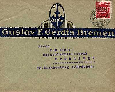 Inlandsdrucksache (1-25 g) vom 23.08.1923 frankiert mit einer Marke a 200 Mark (=200 Mark) |