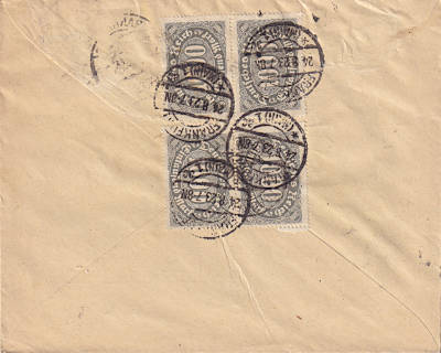 Ortsbrief (21-100 g) vom 30.08.1923 frankiert mit 4 Marken a 3 000 Mark (=12 000 Mark) |