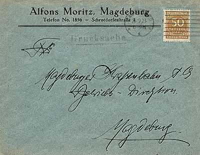 Inlandsdrucksache (1-25 g) vom 26.09.1923 frankiert mit einer Marke a 50 000 Mark(=50 000 Mark)
