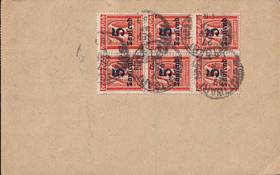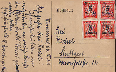 Ortspostkarte vom 27.09.1923 frankiert mit 10 Marken a 5 000 Mark auf 40 Pfennig(=50 000 Mark)