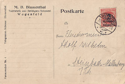 Inlandspostkarte vom 17.10.1923 frankiert mit einer Marke a 2 Millionen Mark auf 200 Mark (=2 Millionen Mark) |