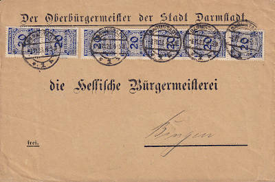 Inlandsbrief (1-20 g) vom 03.11.1923 frankiert mit 5 Marken a 20 Millionen Mark