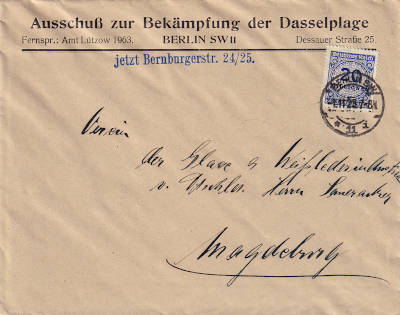 Inland printed matter (1-25 g) from 01.11.1923 franked with one stamp a 20 Million Mark (=20 Million Mark)