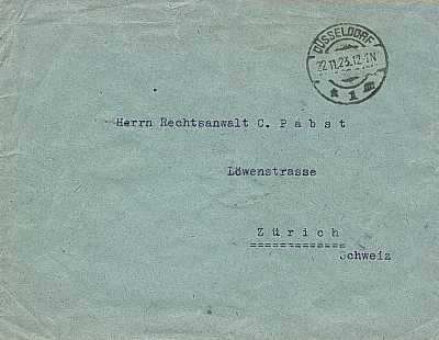 Auslandsbrief (1-20 g) vom 22.11.1923 frankiert mit 4 Marken a 20 Milliarden Mark (=80 Milliarden Mark)