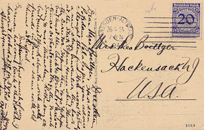 Foreign postcard from 26.04.1924 franked with one stamp a 20 Pfennig (=20 Pfennig)