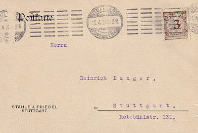Inlandsdrucksache (1-50 g) vom 11.04.1924 frankiert mit einer Marke a 3 Pfennig(=3 Pfennig)