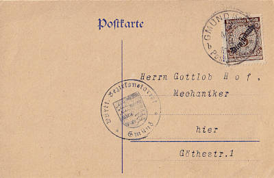 Ortspostkarte vom 12.05.1924 frankiert mit einer Marke a 3 Pfennig (=3 Pfennig)