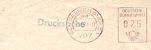 Postfreistempel werden von der Postzum frankieren von Massen-Sendungenmehrere Absender verwendet. Sie enthalten kein Werbeklischee