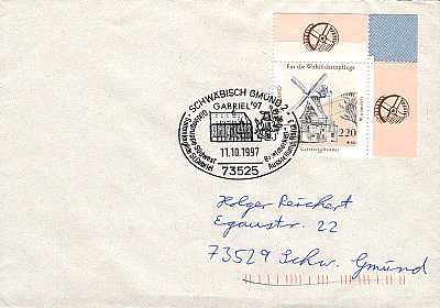 Am 11. + 12.10.1997 fand im Franziskaner eine Rang 3 Briefmarkenausstellung mit Sonder-postamt der Sammlergilde St. Gabriel,