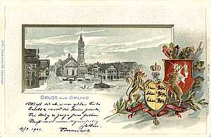 Ostseite mit Wappen von Gmündund von Württemberg 1900