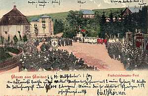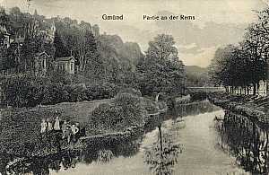 Der Knabe Schiller anno 1765 vor dem Gasthaus zum Ritter in Gmünd beim Murmelspiel 1905 |