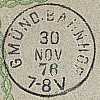 Einkreisstegstempel mit Gitterbogen oben und unten (bozbu) "GMÜND/ (Datum)/ BAHNHOF"