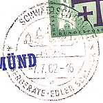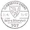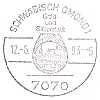 Einkreisstempel mit zwei Rechtecke und Sehne (bo2z) "SCHWÄBISCH GMÜND 1/ (Stadtwappen)/ (Datum)/ (Johanniskriche)/ 7070"