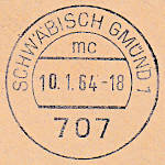 Einkreisstempel mit Stegsegment oben (bo3z) "SCHWÄBISCH GMÜND 1/ mc/ (Datum)/ 707"