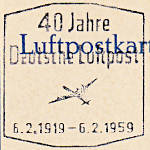 "40 Jahre/ Deutsche Luftpost/ (Flugzeug)/ 6.2.1919 - 6.2.1959"; Zweikreisstegstempel (bozbu) "(14a) SCHWÄBISCH GMÜND 1/ (Datum)/ aa"